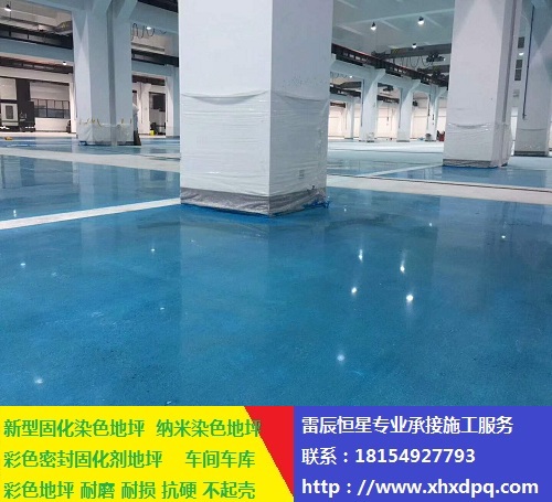 4.固化:染色施工后,將地面干燥24以上,然后在地面涂抹密封固化劑,浸潤一定時間后,清洗地面干凈進行打磨;